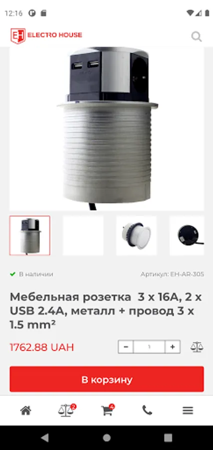 Do you like online shopping? Then the new ElectroHouse service is just for you. It is convenient to purchase branded electrical and lighting equipment TM ElectroHouse for the home: LED lamps, track lights, UZO, DIF automata, furniture and floor sockets, and a huge amount of other goods. The entire range of products of our brand has a detailed description indicating the technical characteristics for each heading - be it a circuit breaker, LED panel, spotlight, dimer, terminal block or cable tie. The application has customizable filters that will make the selection of the right product even easier and more convenient. It’s incredibly simple to choose any product according to the specified parameters, whether it is track electrical accessories, electrical tools or a ceiling lamp. And also, the application unobtrusively shows recommended products that may interest you. There is a search where you can find the goods by name. You can dial, for example, electrical tape, furniture lamp, track socket or lamp holder and our search engine will find the necessary products. In the application there is not only a detailed description of each product, but also its real photos. These photos can be viewed in more detail. The application allows you to increase them. Let's say you want to carefully consider a circuit breaker, cross-module or LED lamp. Perhaps you want to consider the power connector or LED PVZ in all details? Open the desired product and click on the photo.