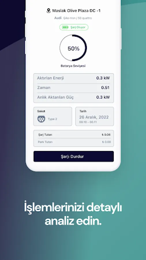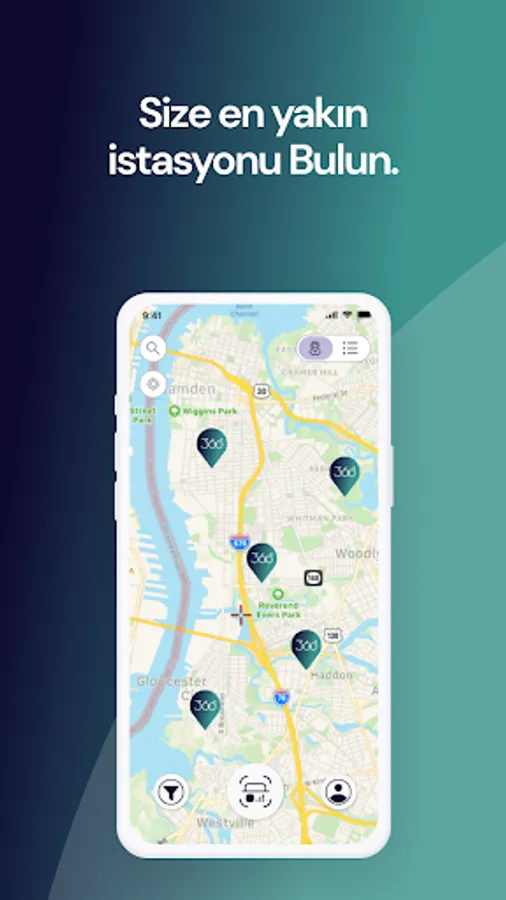 360 Enerji mobile application where the Electric Vehicle Charging Stations prepared by 360 Enerji for our end users can be displayed on the Map, the services around the Charging Station for our end users are displayed, and the charging process can be started and terminated after the vehicle connection is established with the charging station selected on the map.