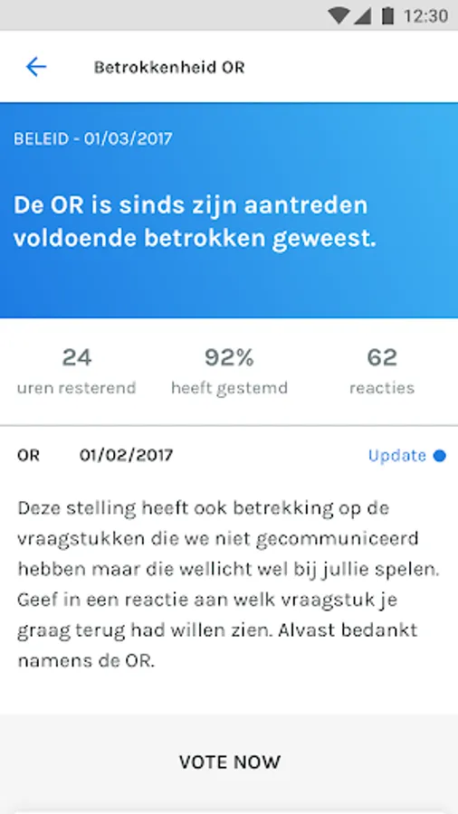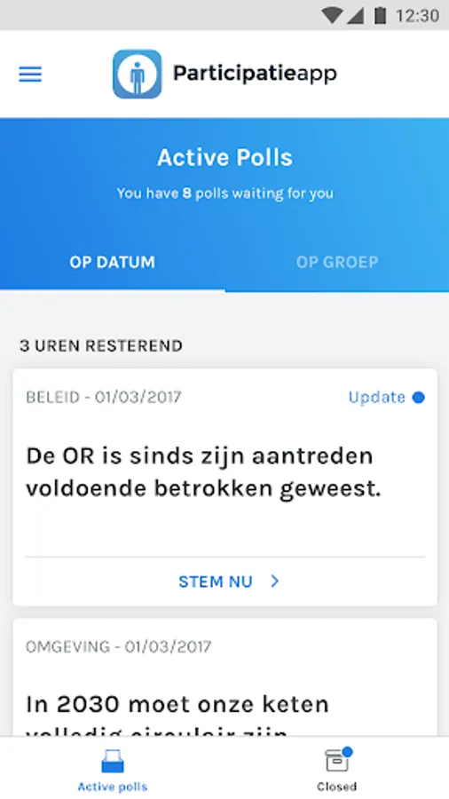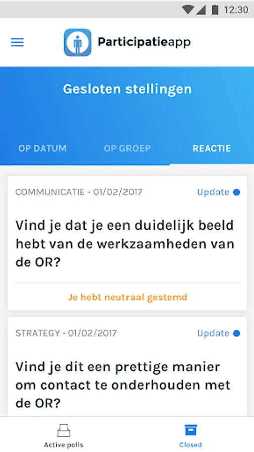Participation app is designed for companies, associations and political parties. The app allows you to employees, members or citizens in an accessible way to ask their opinion. The app was developed by e-Democracy. The Participation app you can: