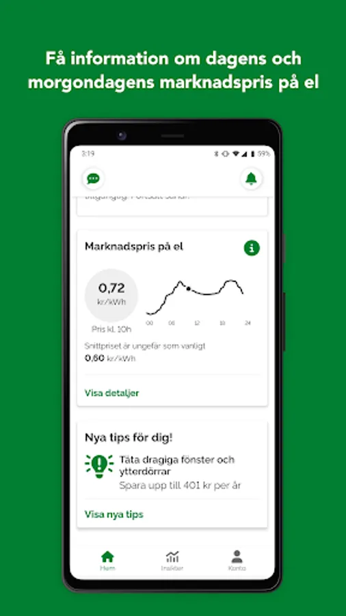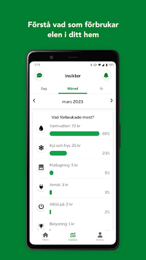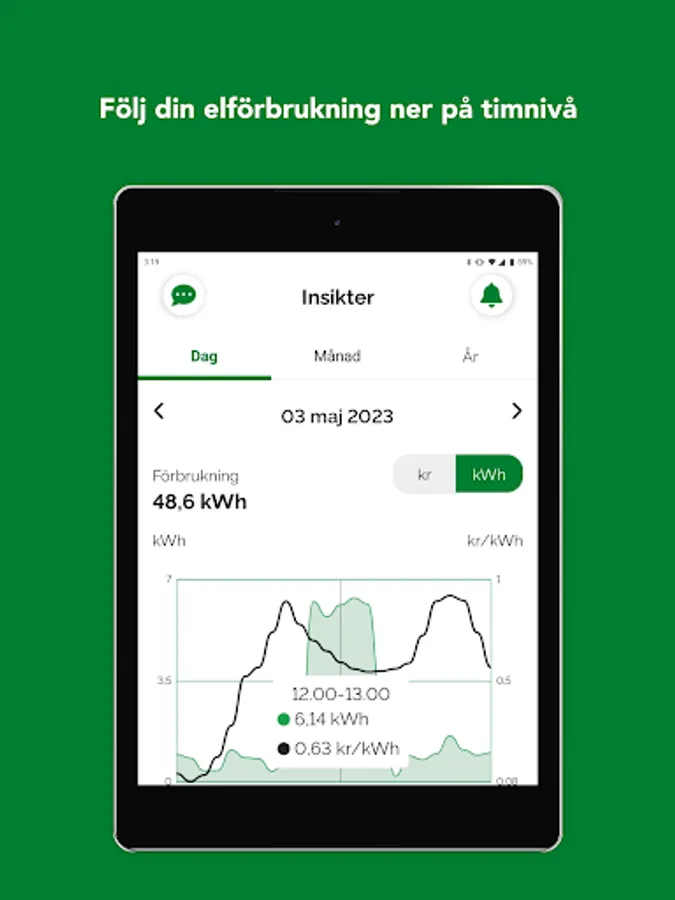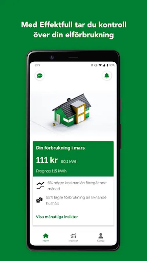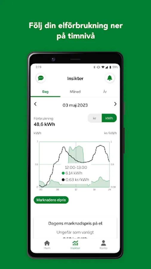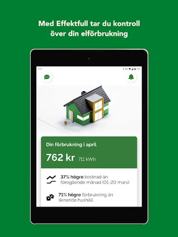 With Umeå Energi's app Effektfull, you take control of your electricity consumption with forecasts of consumption and costs down to the hourly level. Compare yourself with similar households and receive personal energy saving tips as well as warnings about high electricity prices or abnormally high consumption.