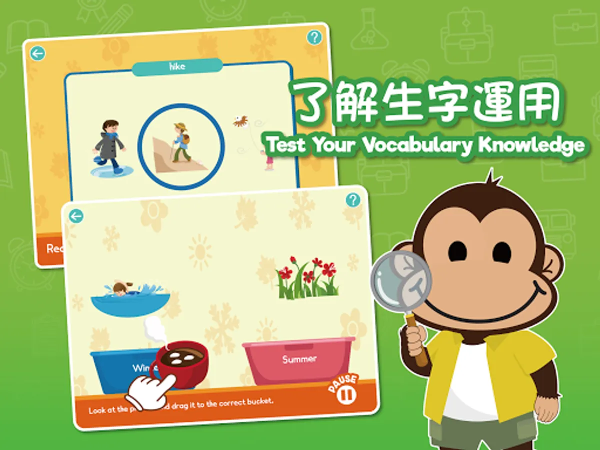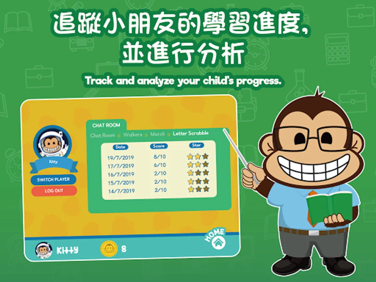 Monkey Town is Monkey Tree’s exclusive online English learning platform intended to enhance your child’s English learning experience through the use of games, exercises, audiobooks, videos, and much more! Our goal at Monkey Tree is to teach kids essential English learning skills, and to make sure they have fun throughout the learning process. We believe that learning through play creates a happier learning experience, thus allowing children to learn more efficiently. Monkey Town’s activities have been designed by language experts to complement our Monkey Tree curriculum, and can be enjoyed by all children that want to further develop and expand their English abilities. Monkey Town is more than just a learning APP, it's a new way to learn and experience English. Download Monkey Town and join the Monkey Tree family today!