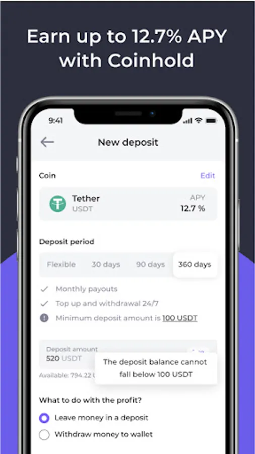 - Open Coinhold savings wallet or transfer a part of your mined funds to a savings wallet