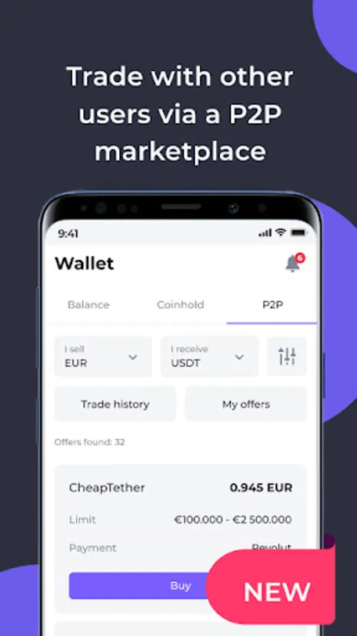 - Deposit and withdraw funds from your wallet (supporting BTC, LTC, BCH, and USDT and USDC stablecoins in the BEP-20 and TRC20 standard)