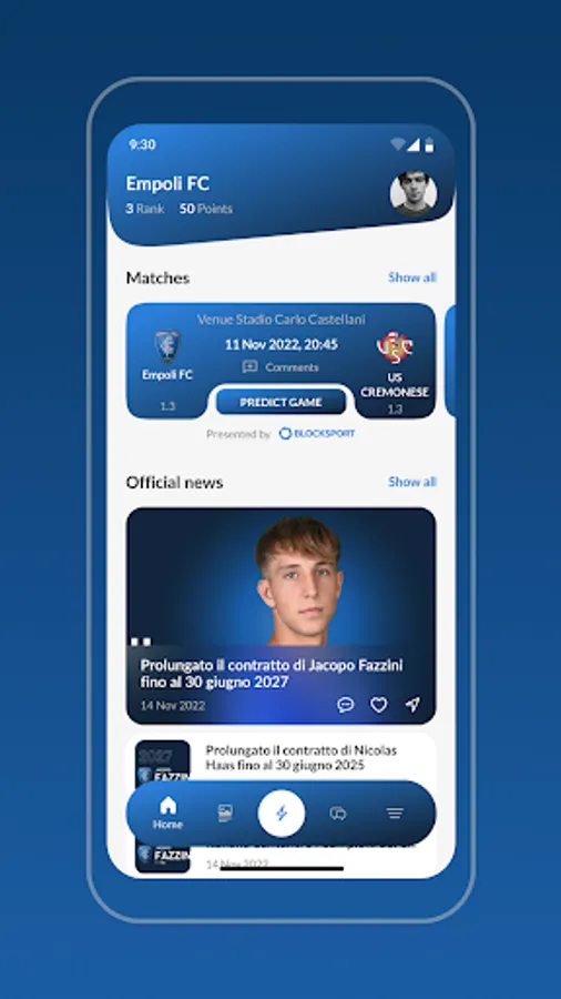 Download the Empoli FC application and discover all the great features for the ultimate fan experience.