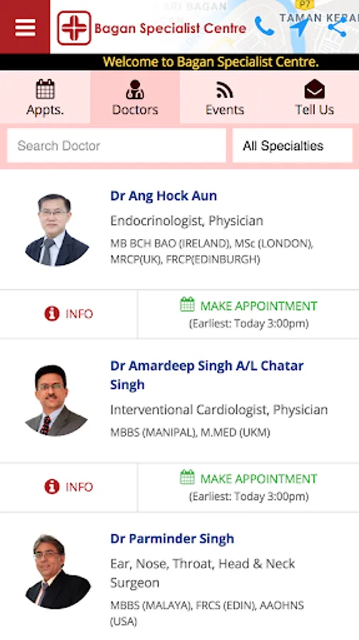 Bagan Specialist Centre (BSC) Mobile App provides you the convenience to make appointment with our doctors easily. You can check doctor's availability and choose your preferred arrival time.