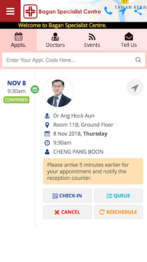 Our app will remind you when your appointment is due, you can choose to confirm your appointment or reschedule with ease. On your appointment day, you can also check clinic live queue from home using our app.