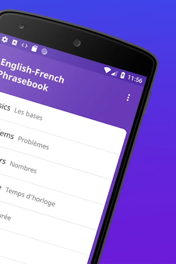 The French Phrases Offline app will help you in learning French. Many useful english-french (anglais-français) phrases that will help in daily communication. The phrases are divided into several categories for the convenience of users.