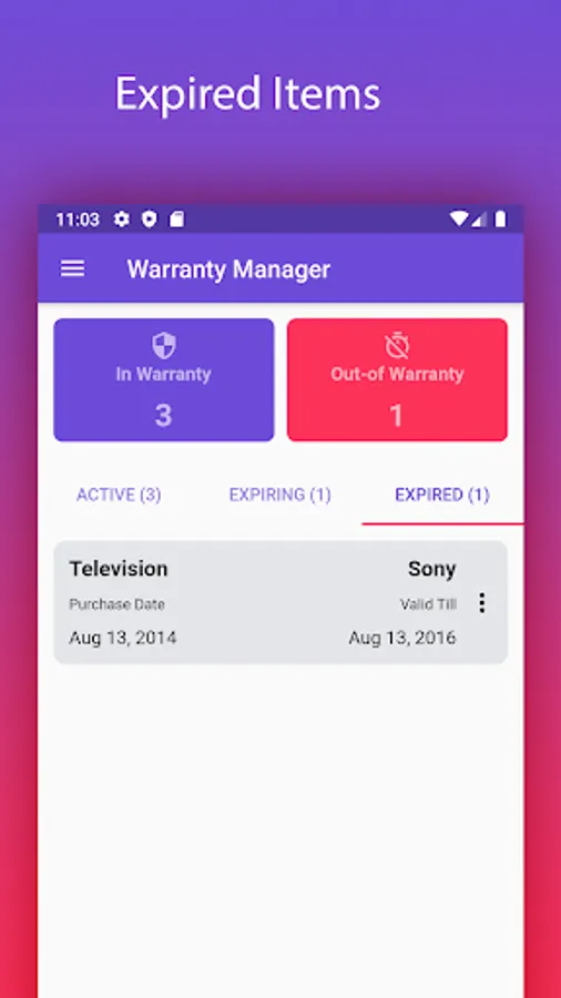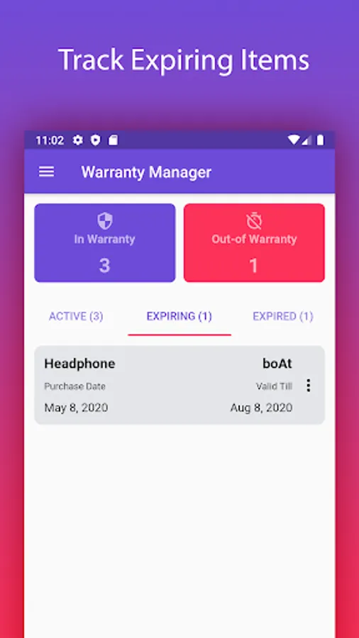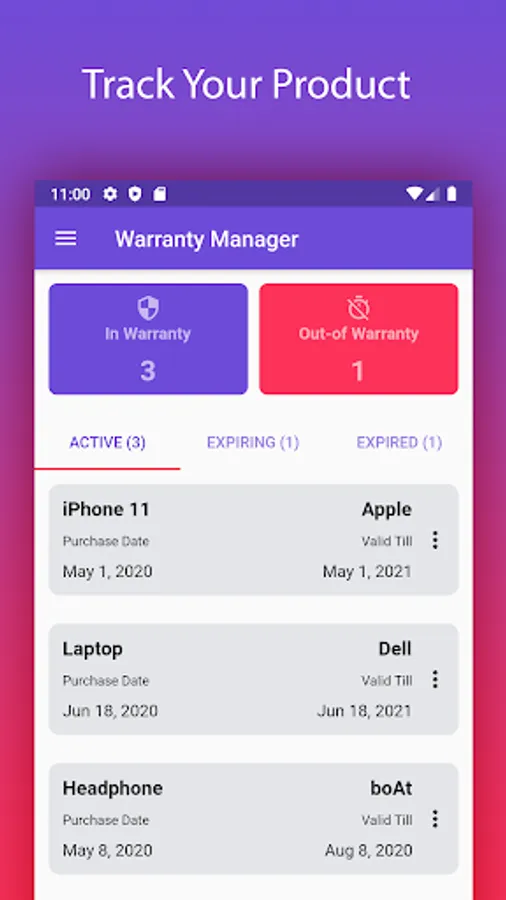 This is an application to Manage all your product's warranty and related information. This application will be useful to save, find and track all your household, personal or business assets with their purchase date, warranty period, bills so on.