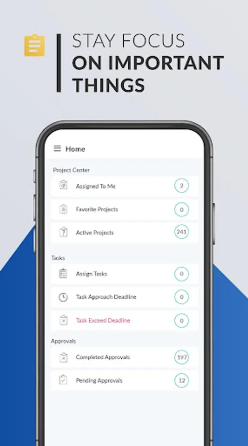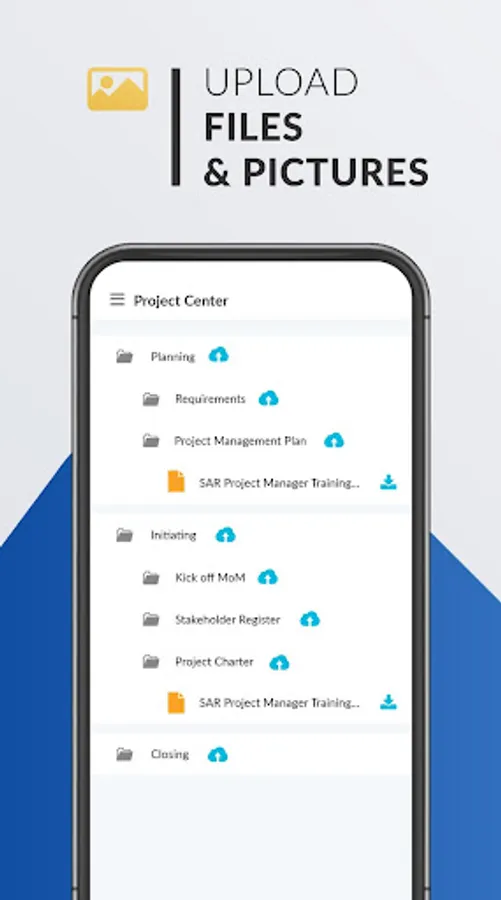 With SAR-EPM Mobile Application project managers will be able to get things done anywhere and in timely manner, the project manager will always have access to his/her project full details including the project general details, project schedule, list of deliverable, list of risks, list of issues, list of CR, list of tasks, list of approvals, and the project list of documents, the project manager will be able to do multiple actions on his/her project such as: approving or reject approval tasks for the project or for the project related items such CR approval and deliverable approval, download and upload documents and pictures related to the project to the project document library. In additional to that the project manager will have a home page that will list items that needs the project manager attention like delayed tasks and pending approval.