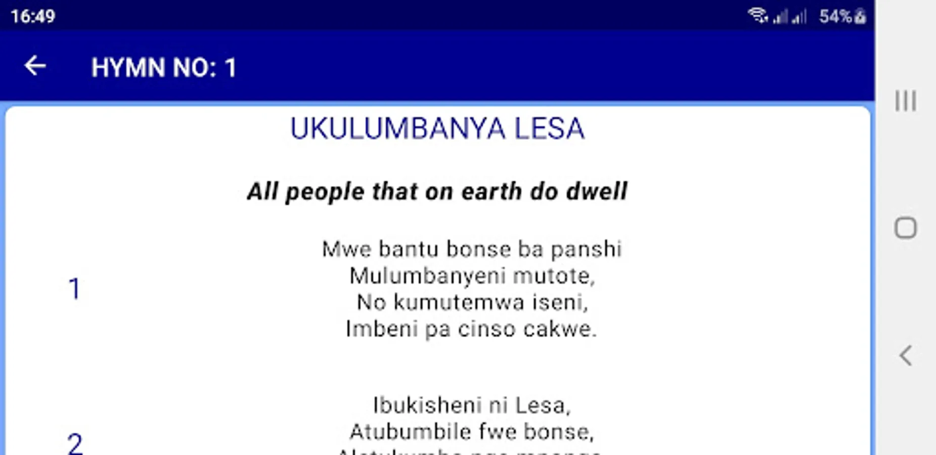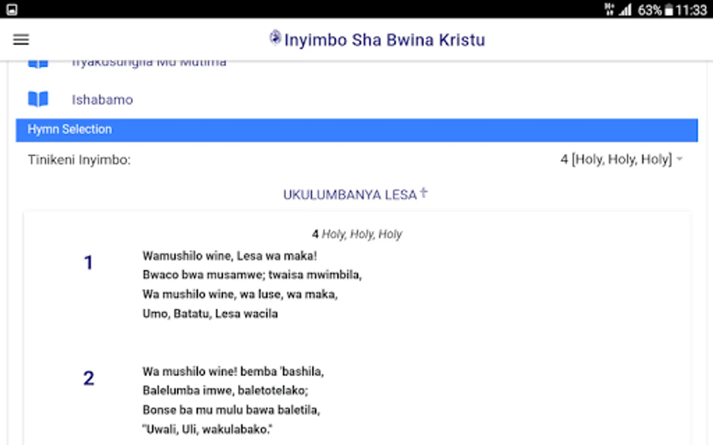 UCZ Inyimbo Online is an online hymn repository that contains the English & Bemba hymns from the UCZ Church Hymn Books. At the moment this application contains a few English hymns.