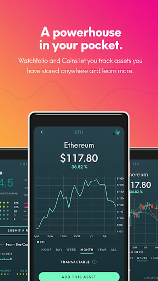 COINS - Choosing the right digital assets can be a challenge. With Coins, you’ll have access to powerful coin profiles that combine raw data, key facts and social intelligence with technicals, market performance, ratings and more. Everything you need at your fingertips.
