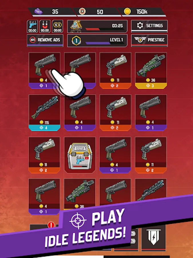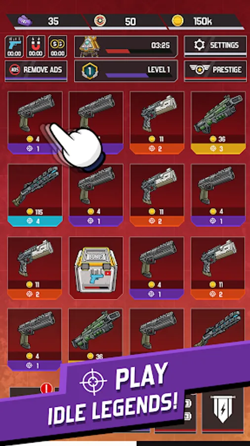 Merge Idle Legends and discover over 200 unique weapons.