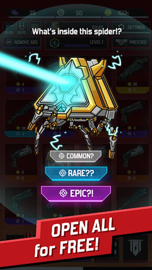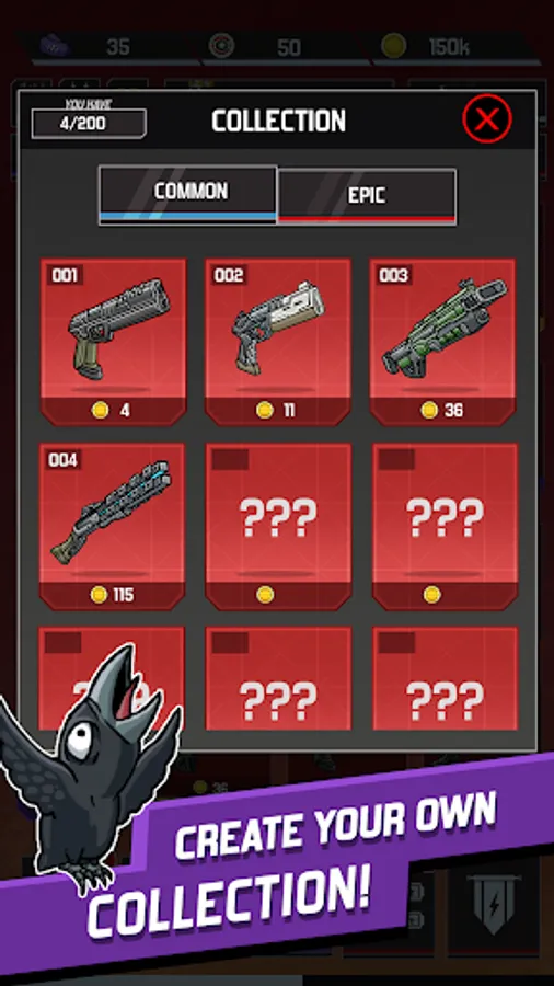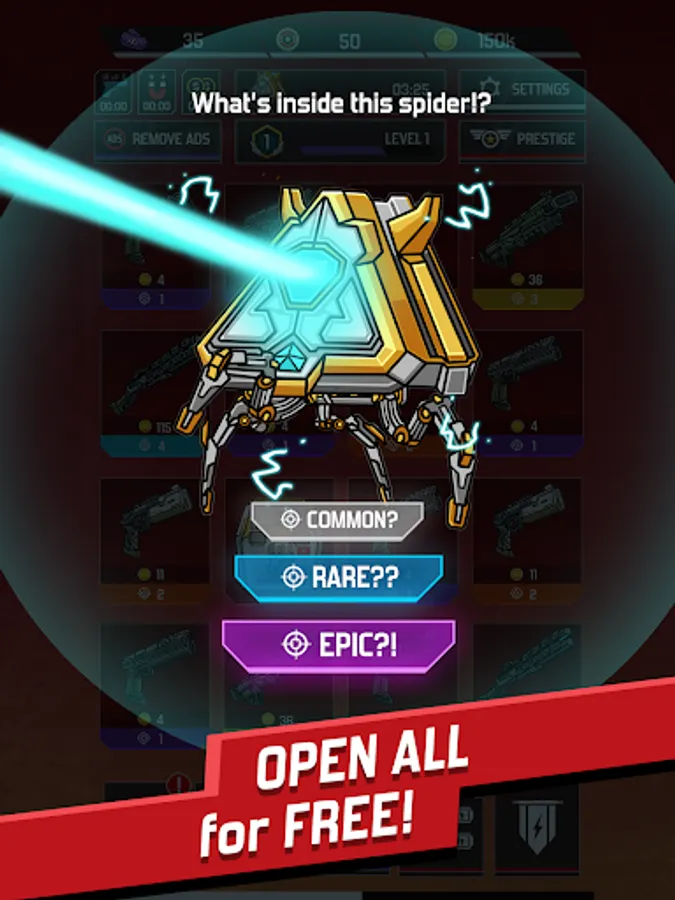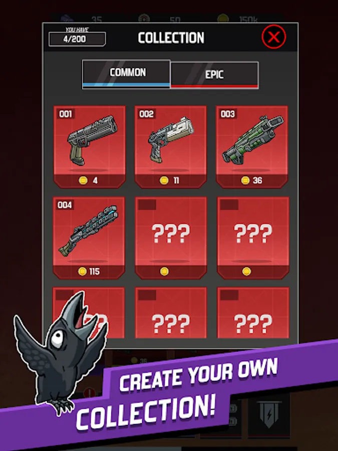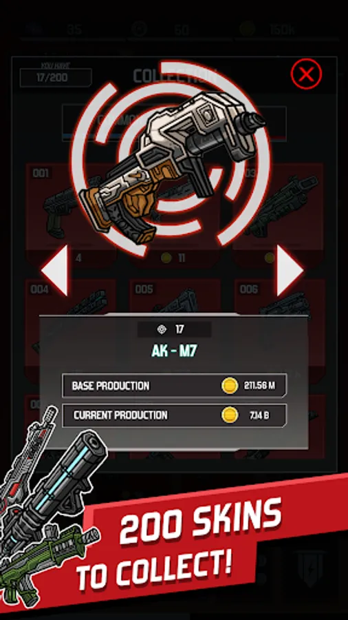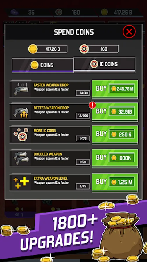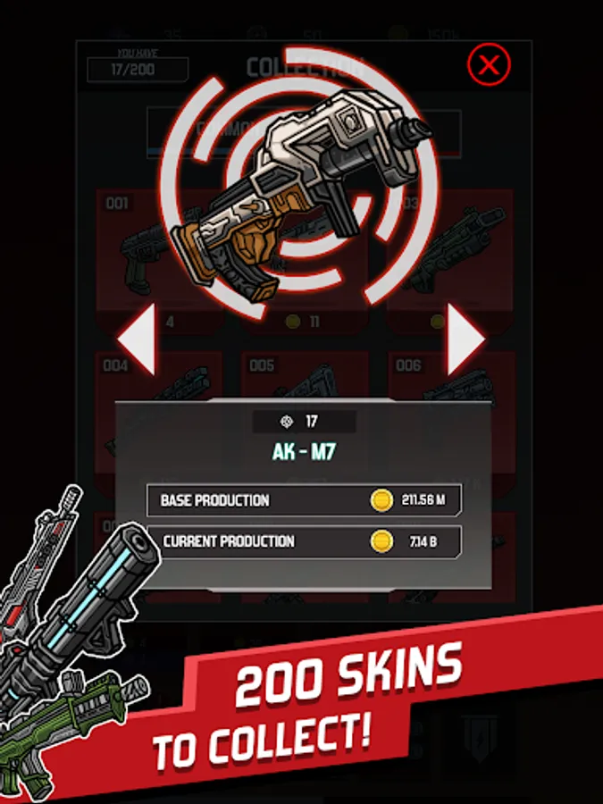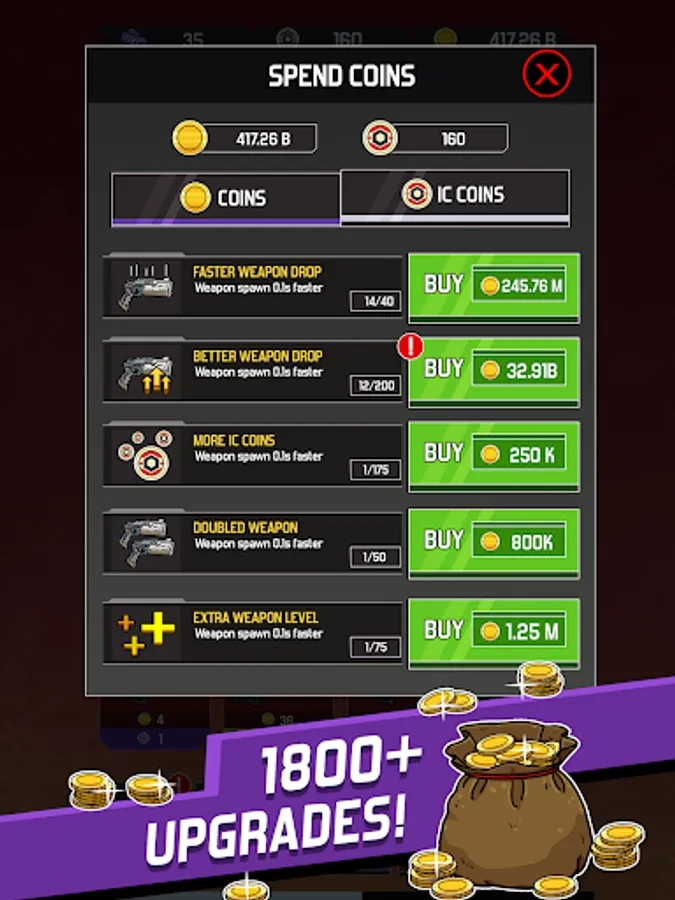 Come back everyday to collect your coins and tickets to buy up to 1800 Upgrades for your weapons.