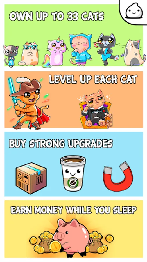 • As your Cat evolution drop coins, buy new Cat to earn even more money