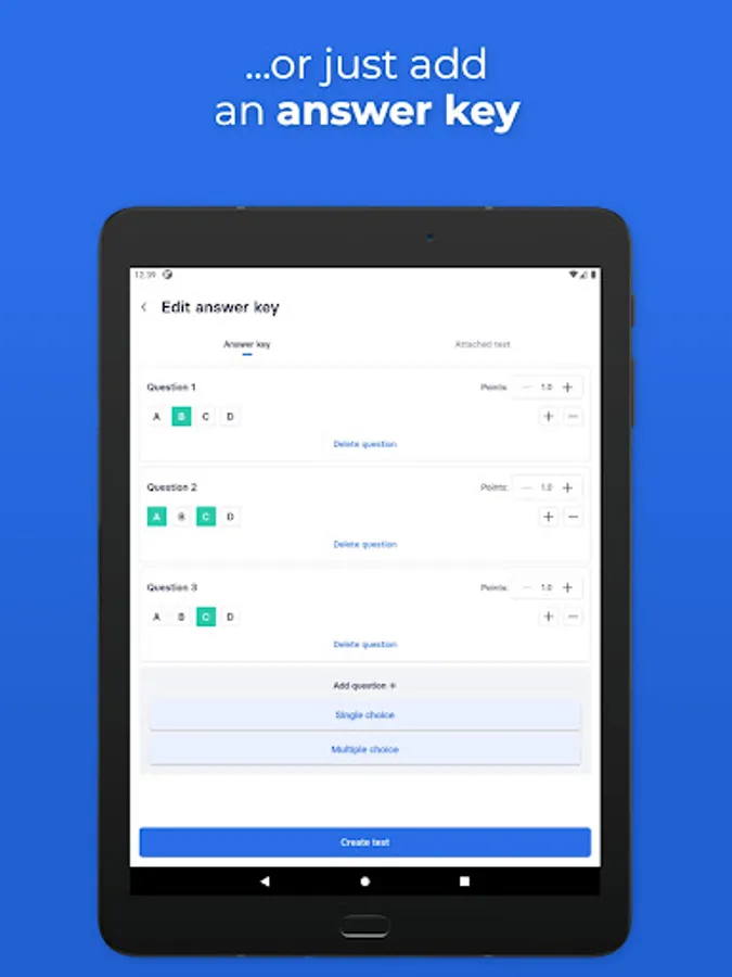 • PAPER assessments - Simply point your camera at a student’s answer sheet to grade it.