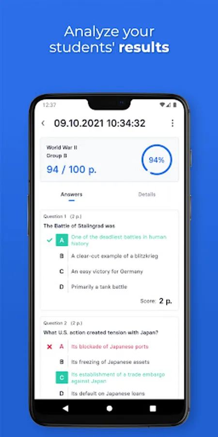 • After grading all papers, send results to your students with just 1 click