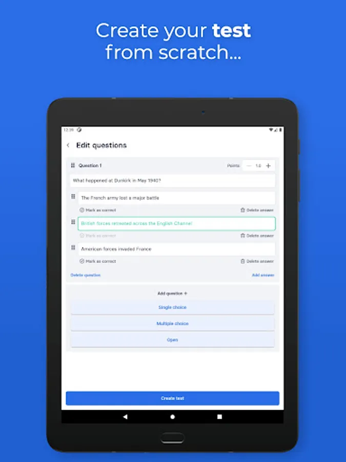 • Supports multiple choice and open questions