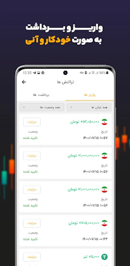 نقد کردن دارایی دیجیتال خود و پرداخت ریال اتوماتیک