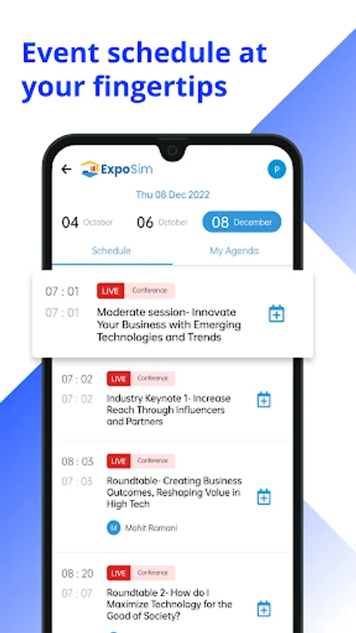 The event list feature allows you to view all your registered, live, and old events in one place, making it easy to stay organized. The schedule feature allows you to plan your day and make the most out of the event.