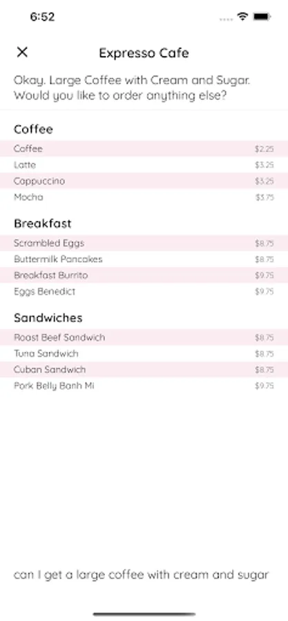 Our mission is to revolutionize the way people order food. Expresso makes it easier than ever to order ahead from local restaurants. Our app features the world's first AI voice assistant for ordering food. Please be patient with us - we launched our platform in Nov. 2020 and our selection may be limited.