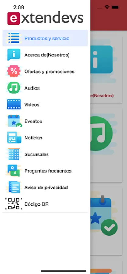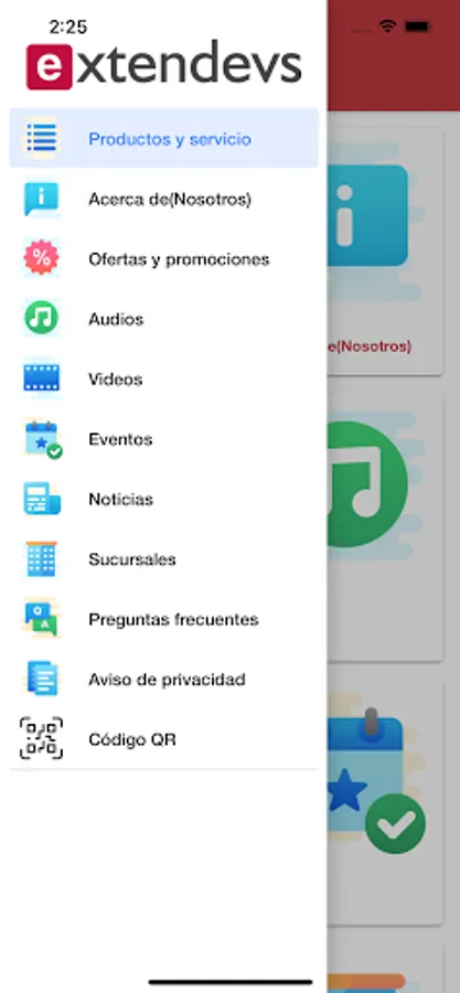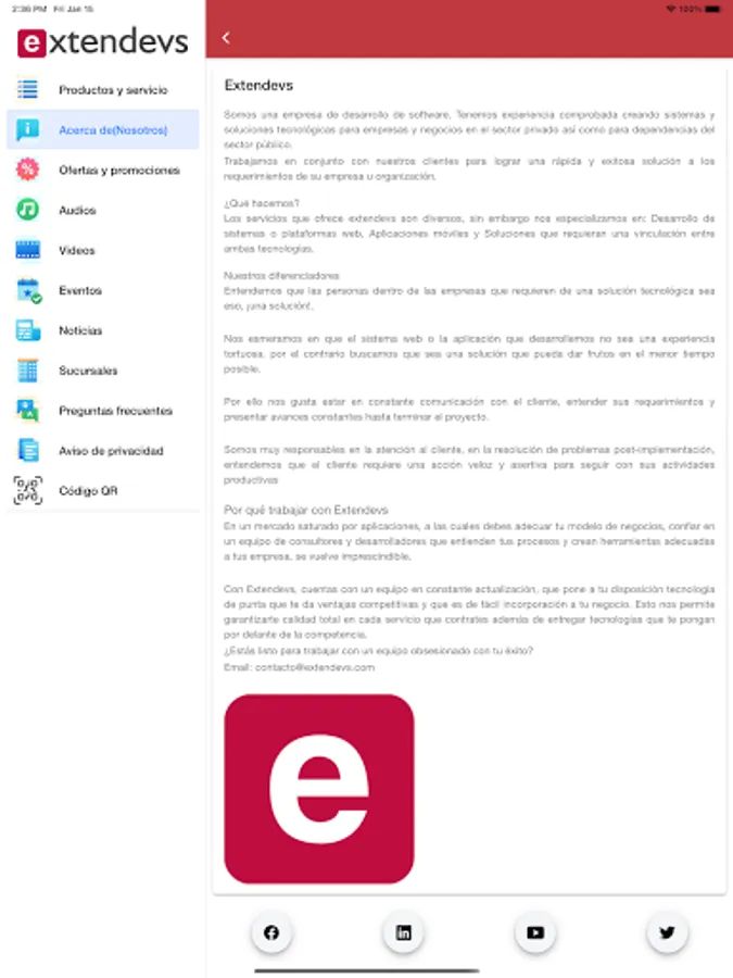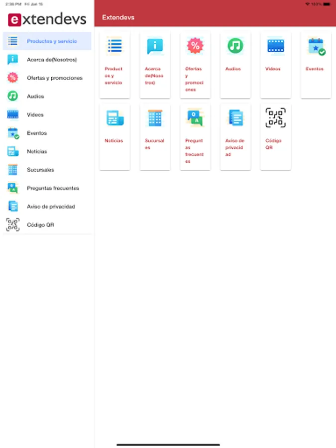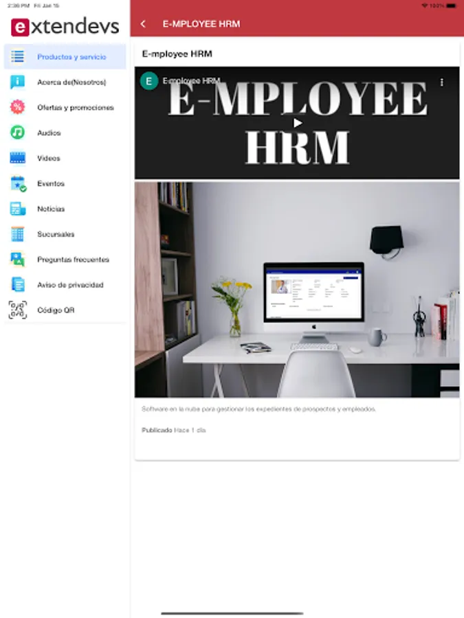 Extendevs app, publication of services, achievements and support material