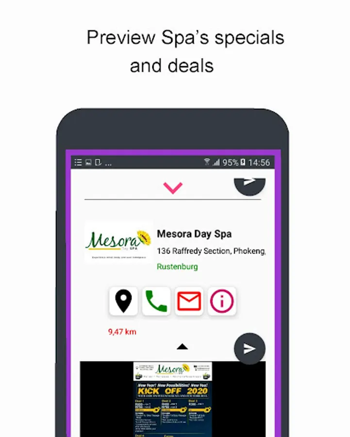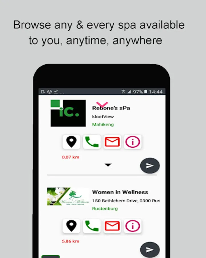 The mySpa App allows you to locate & contact your desired spa from when and where you choose.