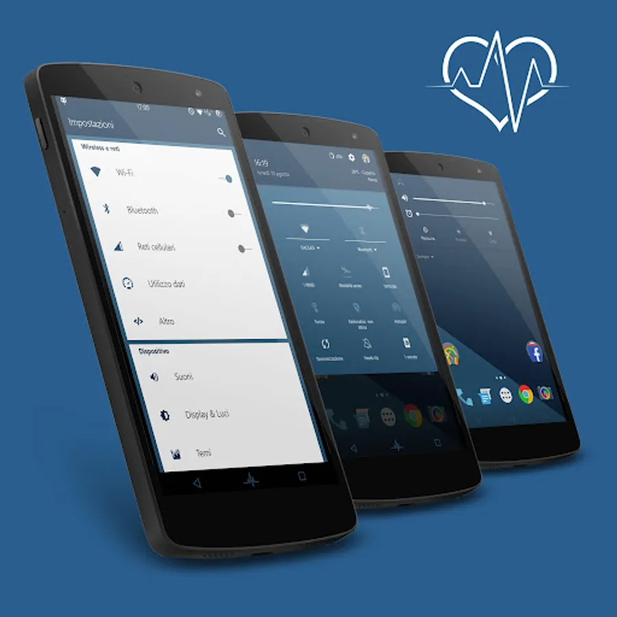 Razaer Blue is a theme that begins from experiments with light and dark colours, giving personality to your smartphone. In light version.