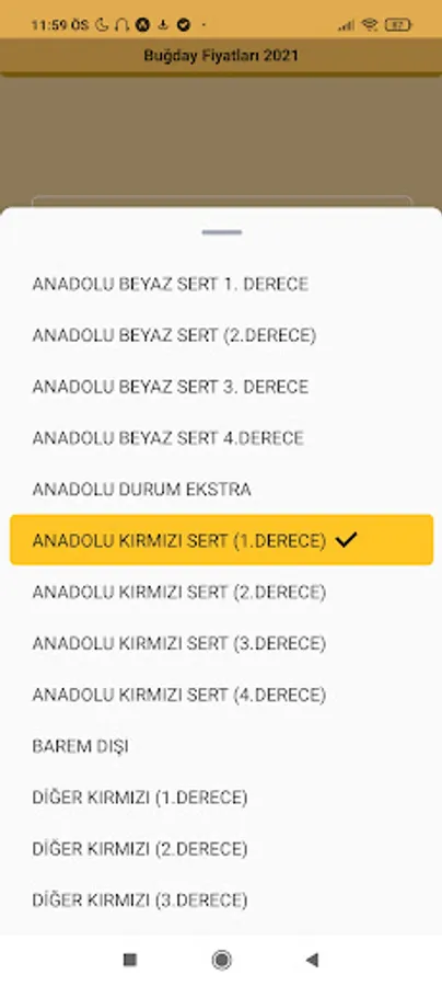 1- Select the type you want to see the prices of from the list