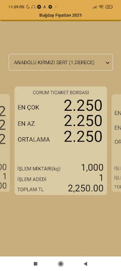 You can view minimum - maximum price and volume information for all wheat varieties. It shows the trade stock prices of all provinces.
