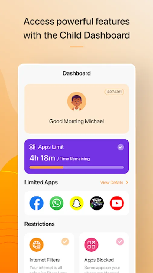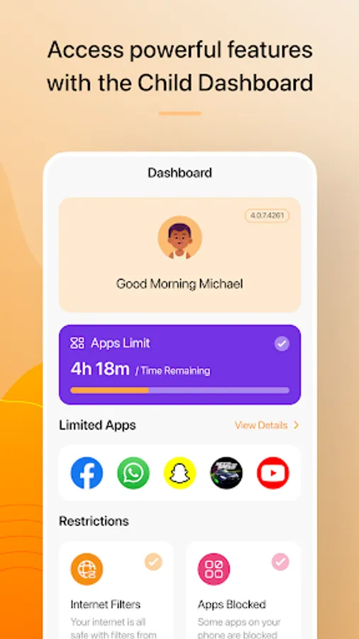 That's why limiting screen time is what parents need to secure children's health and happiness. This parental control app restricts time spent on mobile gadgets and applications. Limit the following device use: