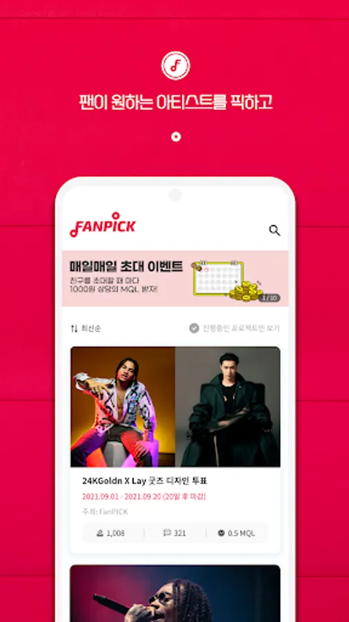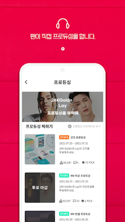이제 Fan이 직접 PICK을 통해 앨범 기획과 제작에 참여합니다.