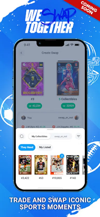 Built on Flow, the top sports blockchain for official digital collectibles, SWAP is where player prowess and personality intertwine, elevating every collectible into a true gem. Created in collaboration with student-athletes, each purchase benefits the stars who co-crafted these digital marvels.