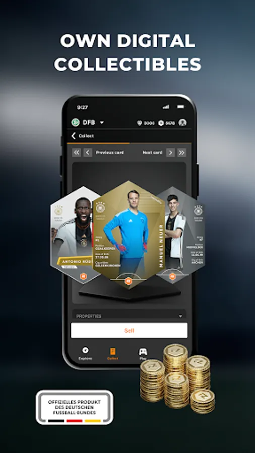 Use your digital collectibles to compete in different challenges like Fantasy Manager or Penalty Game and win additional prizes or in-game currency with which you can buy more collectibles.