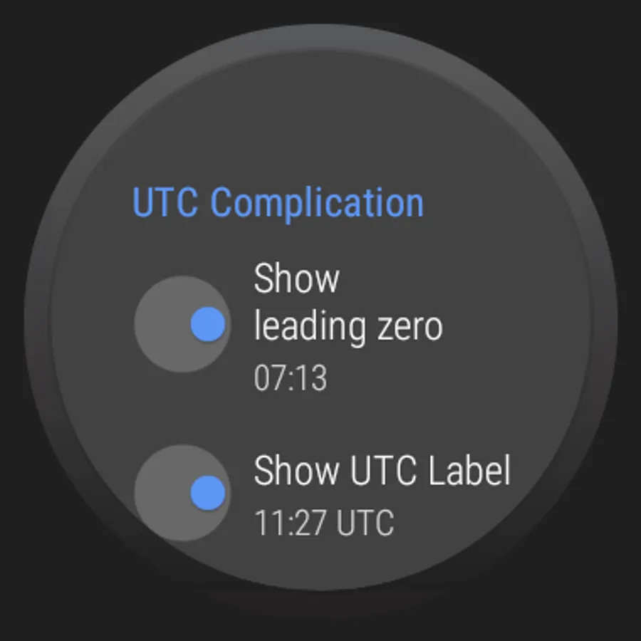 Coordinated Universal Time (UTC), helpful for developers, pilots, and anyone that needs to compare against UTC/GMT/Zulu time. Note that you can achieve similar results with the default Android Wear complications by choosing Reykjavík timezone as a world clock complication. However, if you're bothered by "REY" being on screen at all times, this complication is for you! It also provides a few display features not offered by the world clock complication.