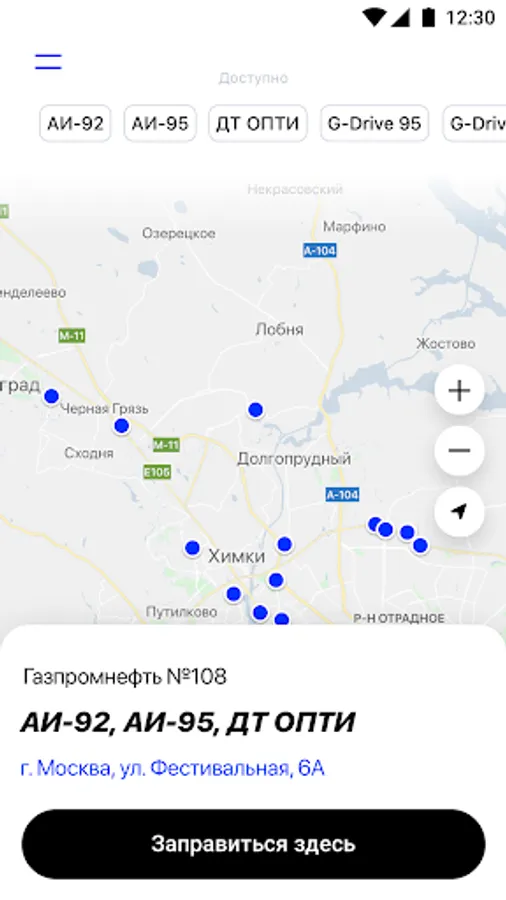 - choose a filling station in the application, indicate the type of fuel, column and number of liters;