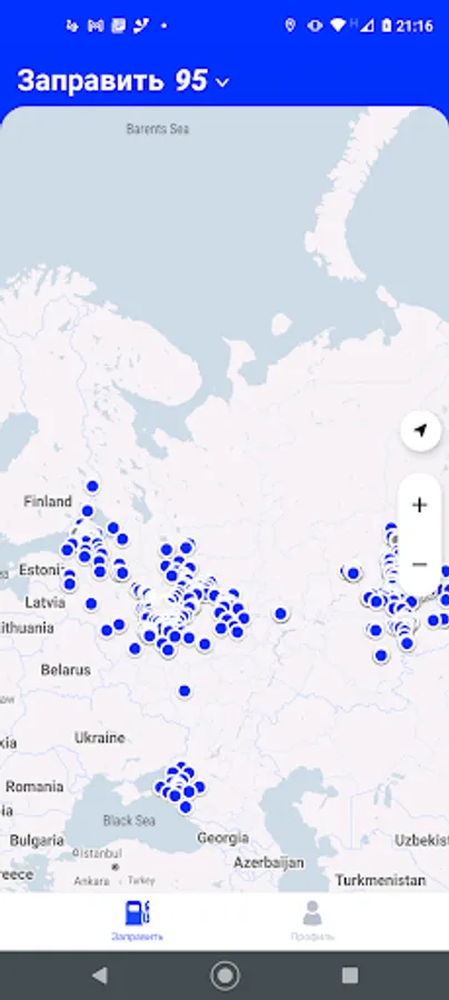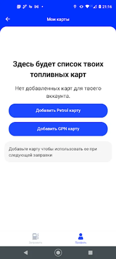 Application for refueling with the accumulation of bonuses to the "Magnet" loyalty card.