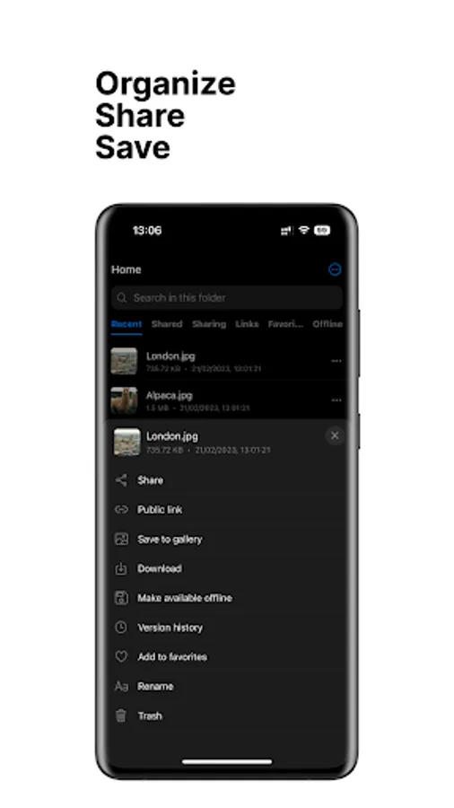 Preview images, videos, audio files and documents directly in the app to boost your productivity.