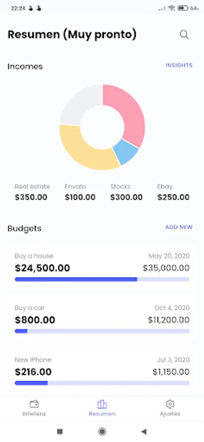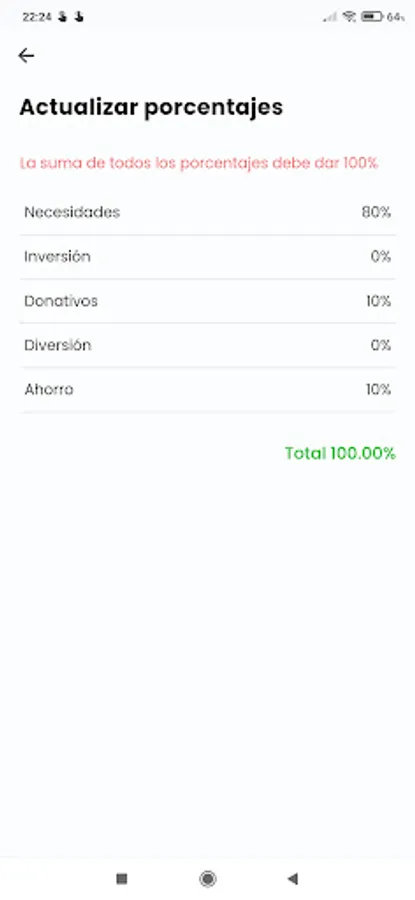 Tufi separates your income into the following categories: Needs, Donations, Fun, Investment and Savings. This in order to have greater control and know where our money is and how much is the maximum that we can occupy for each category.