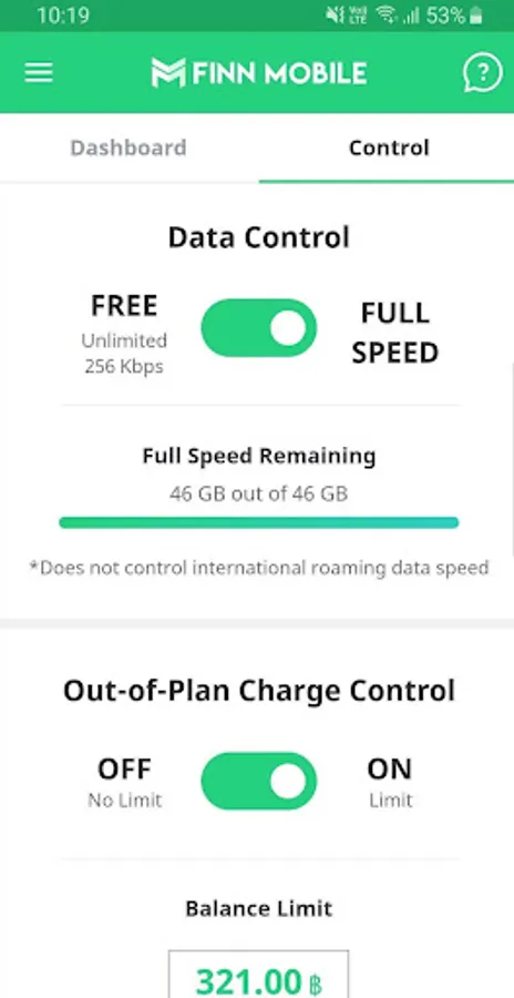 Managing your spending has never been this easy. Check your outstanding balance right on the dashboard and set a limit to your out-of-plan expense with our out-of-package charge control toggle. Want to use more? Not a problem. Upgrade your package whenever you want or buy topping from the main menu.