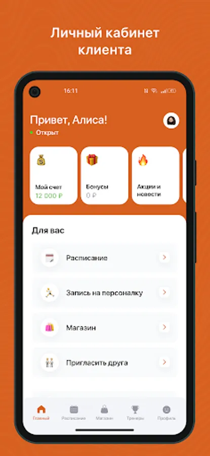 Mobile application for members of the Antifitness sports club (Petrozavodsk).