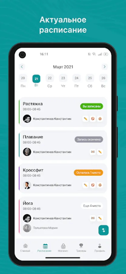 Mobile application for clients of fitness clubs and sports studios
