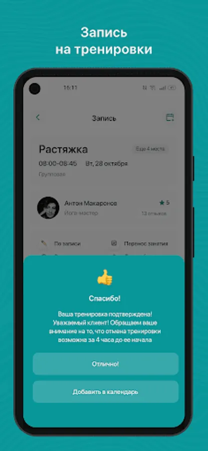 Receive PUSH notifications about an upcoming workout 3 hours in advance;