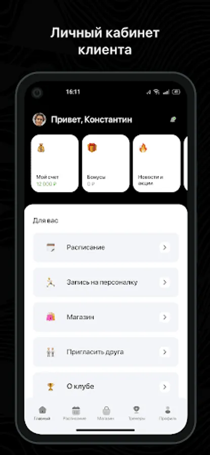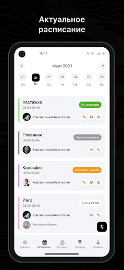 Mobile application for clients of fitness clubs and sports studios