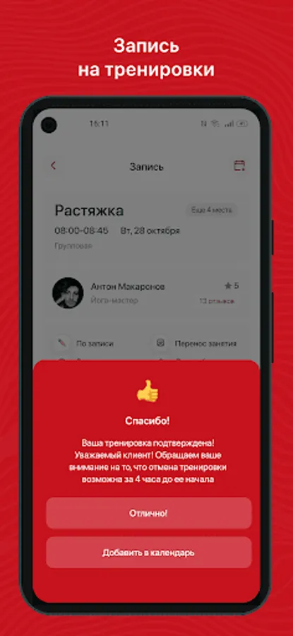 - Receive PUSH notifications about an upcoming workout 3 hours in advance;