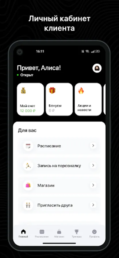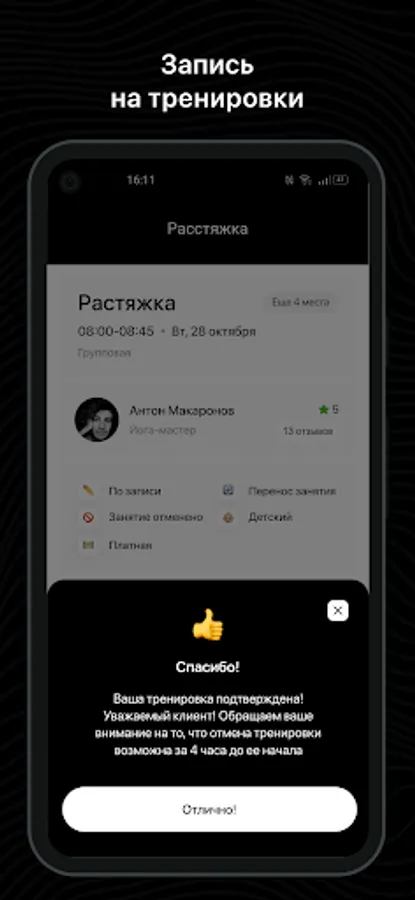 Mobile application of fitness studio BodyHacker.