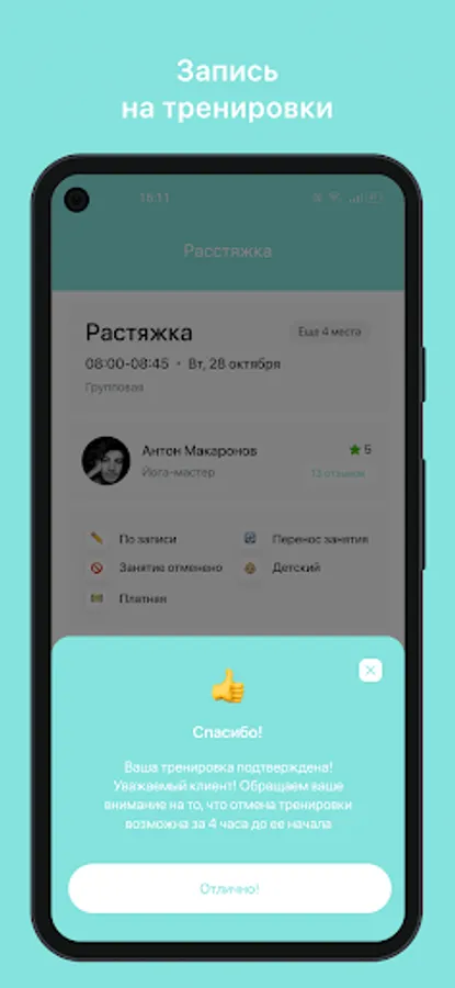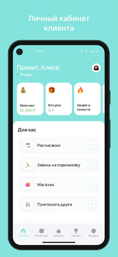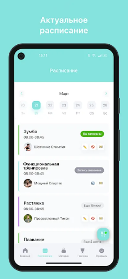 Mobile application for clients of fitness clubs and sports studios