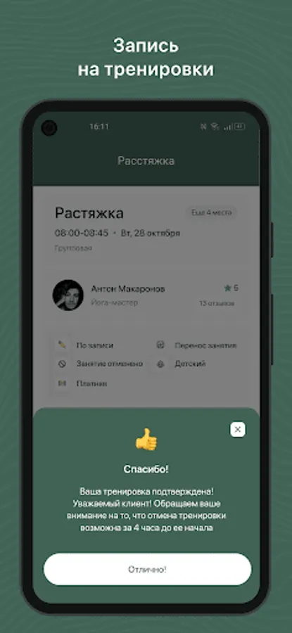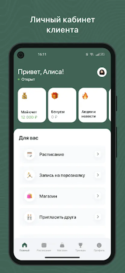 Mobile application for clients of fitness clubs and sports studios