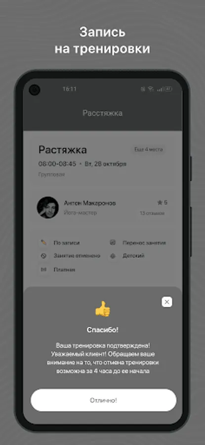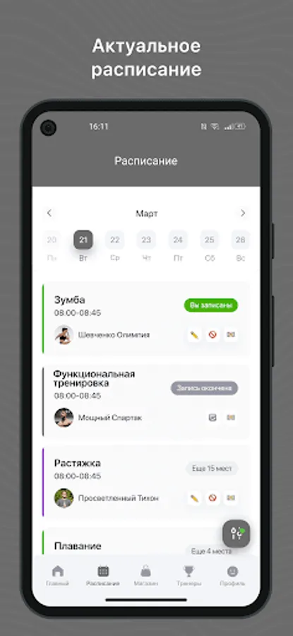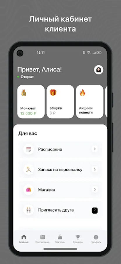 Mobile application for clients of fitness clubs and sports studios