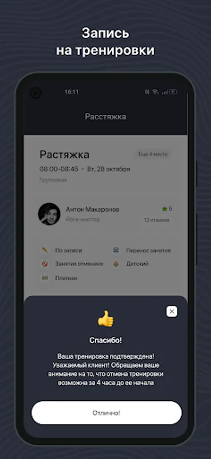 Mobile application for clients of fitness clubs and sports studios