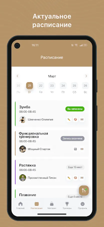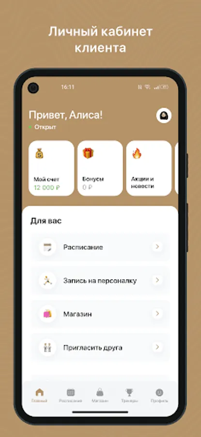 Mobile application for clients of fitness clubs and sports studios